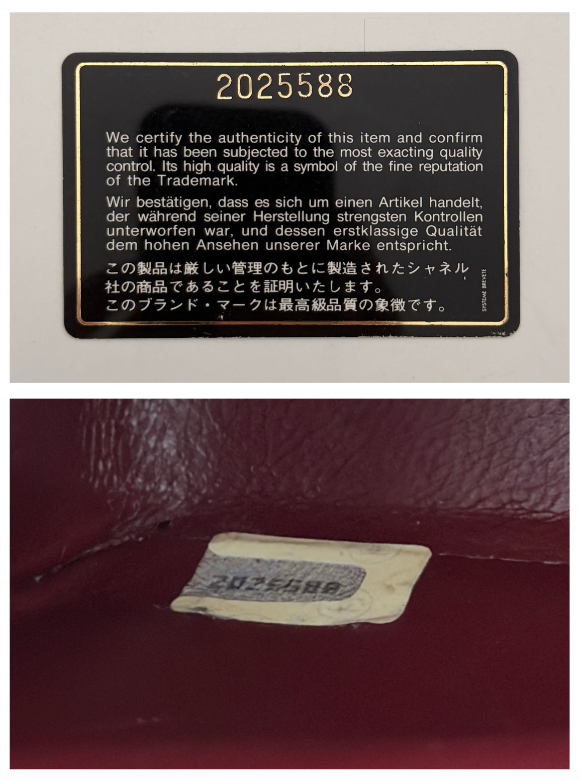 Inclut : Autocollant avec numéro de série à l’intérieur et carte d’authentification.